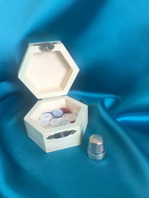 Como veis es un dedal con mi nombre grabado que Helena me entregó dentro de esta cajita tan mona y además pintada a mano. ¿No es un detalle precioso?.