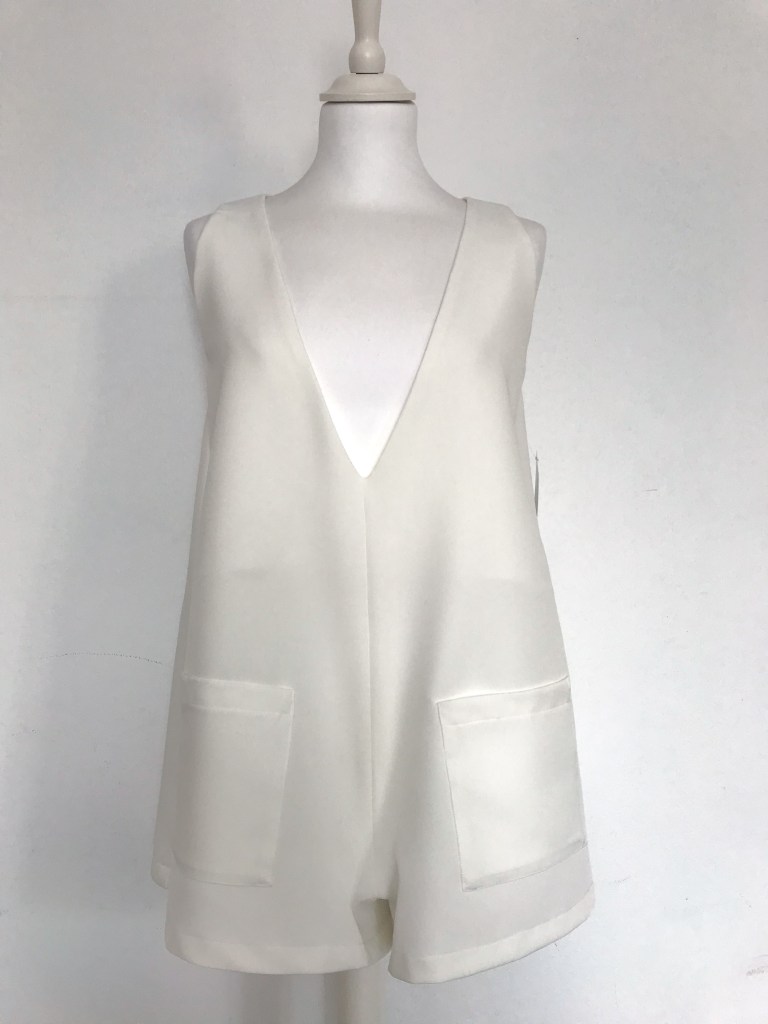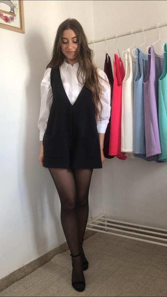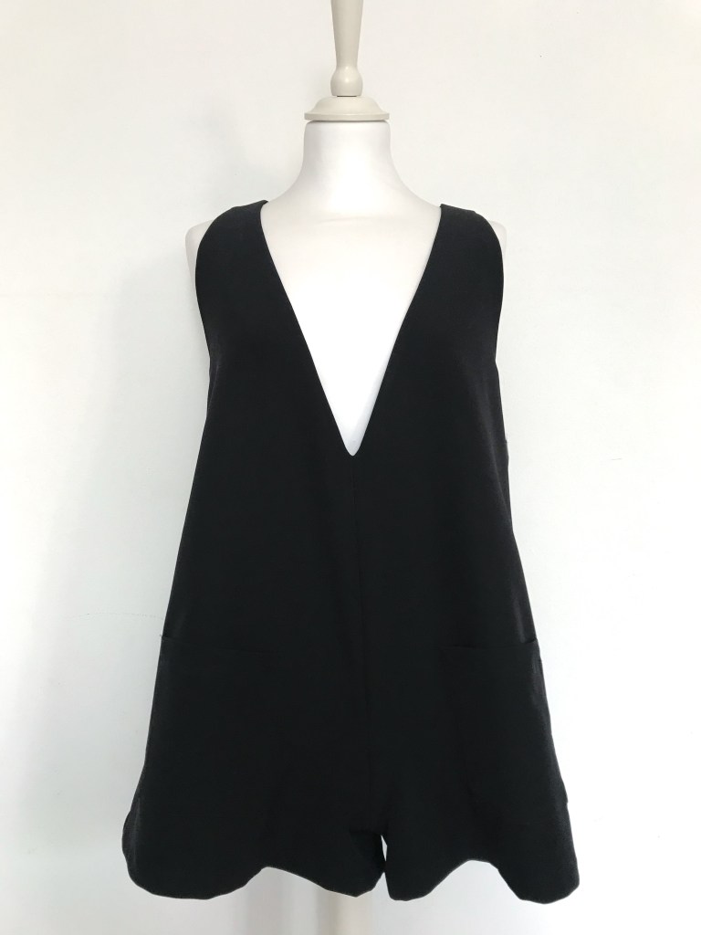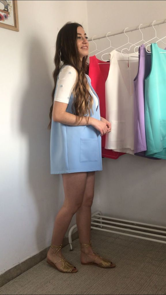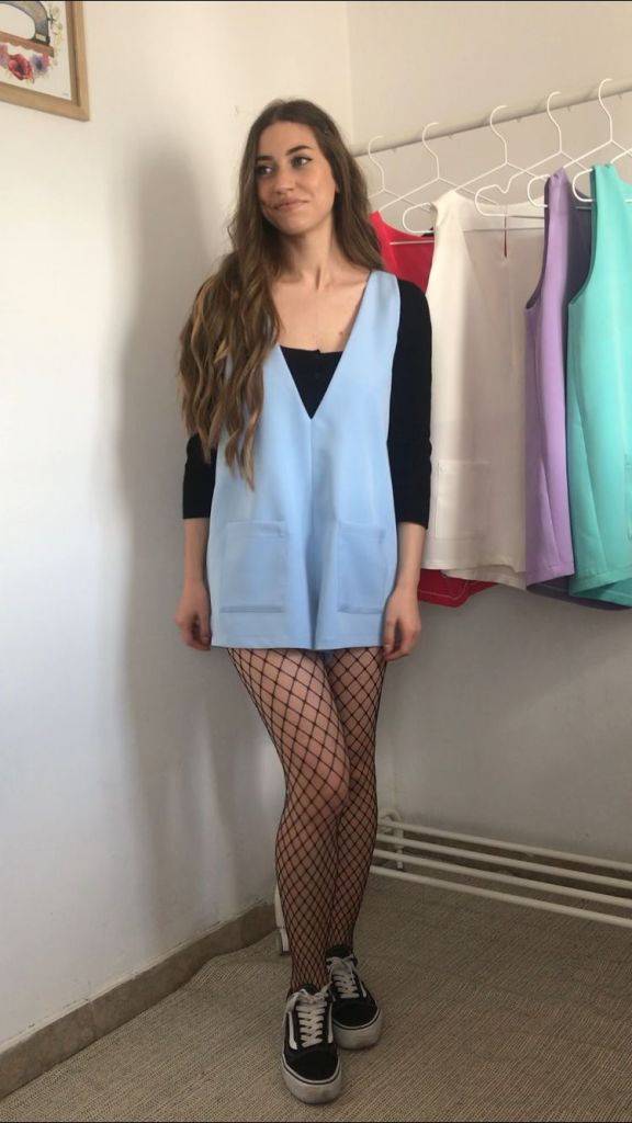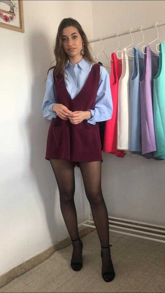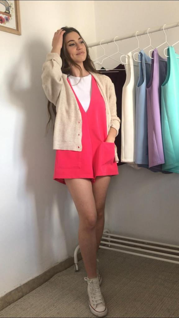 Además, todos los pichis son de talla única, que se corresponde con una M, aunque al ser una prenda holgada, su patrón está industrializado para que no quede pegado y sus medidas reales quedan en 96 cm de pecho y 120 cm de cadera, y un largo total de 70cm. Como veis en las fotos, debajo admite una prenda gordita tipo jersey. Tiene una lágrima en la espalda a modo de cierre, con un botón y presilla de hilo. También tiene incorporados dos bolsillos de plastrón de 14×14 cm. Yo mido 1.64 m, para que os sirva como orientación ya que los muestro puestos en mí.