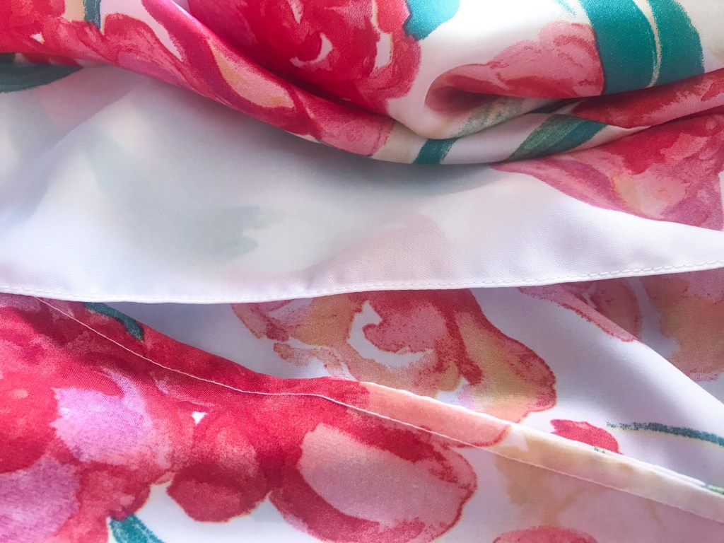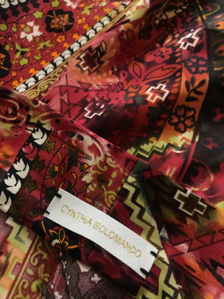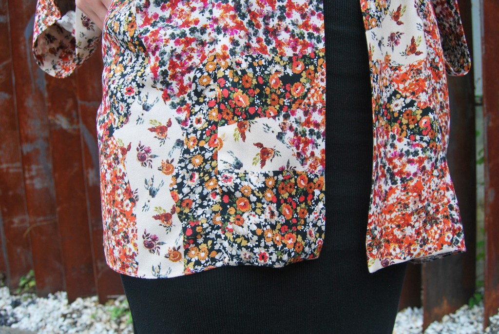 Viendo este estampado no me digáis que no tiene un toque asiático: fondo negro con estas flores tan bonitas en tonos rojos. A mí me enamoró al verlo, y me alegro de haberlo conservado y poderlo utilizar para esta celebración.