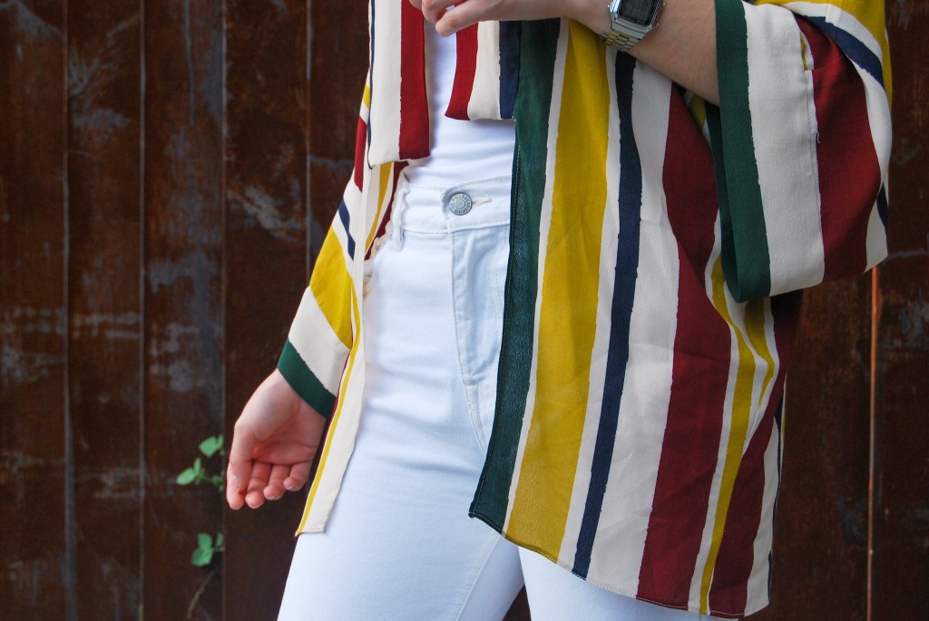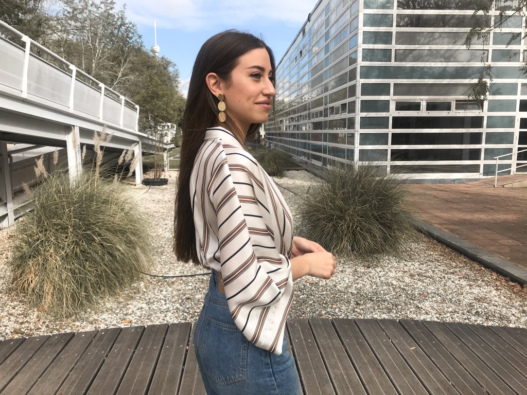 Yo tenía este satén de rayas reservado para un look lencero y, como tengo bastantes metros, me apeteció emplearlo en una blusa-kimono que pueda usar indistintamente como una u otro ahora que llega el buen tiempo.