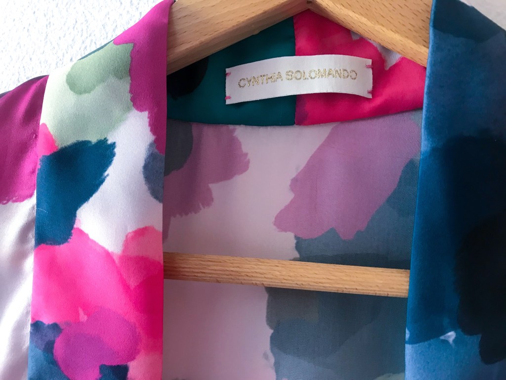 Helena me encargó un kimono para estar en casa. Tenía decidido que lo quería en un tono lavanda, así que elegimos este raso tan dulce.