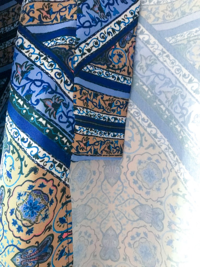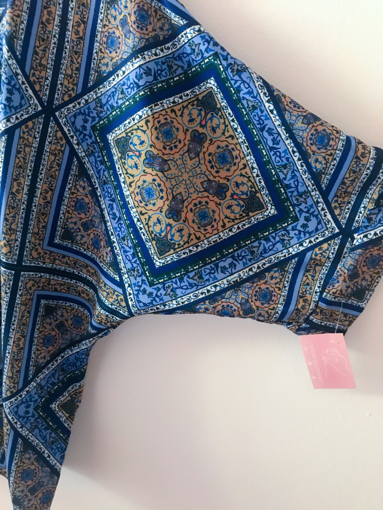 Sabéis que siempre suelo incluir un coletero scrunchie de detallito con cada pedido, pero como la destinataria de la prenda luce pelo cortito, nos decantamos por un pañuelo que combinara con el kimono.