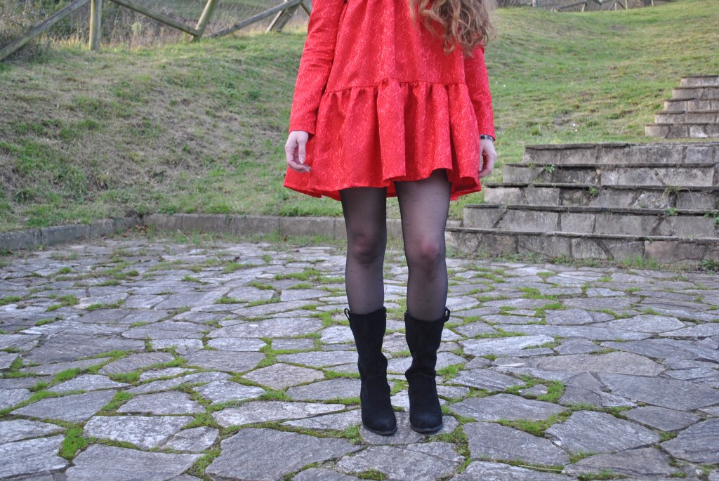 Como veis, María combino su vestido con unas botas camperas en negro, y me encanta lo informal que queda el look de esta manera y el aire country que le aporta.