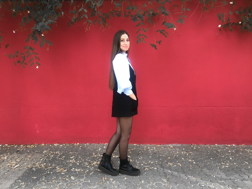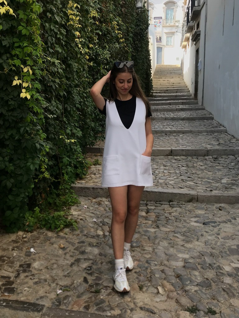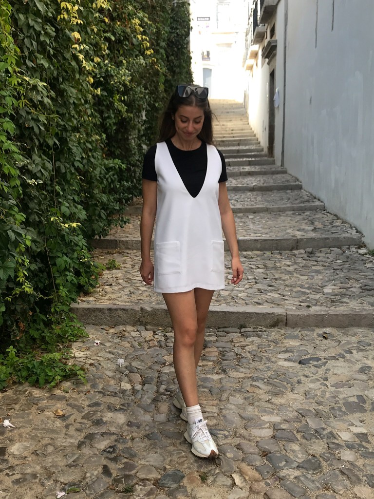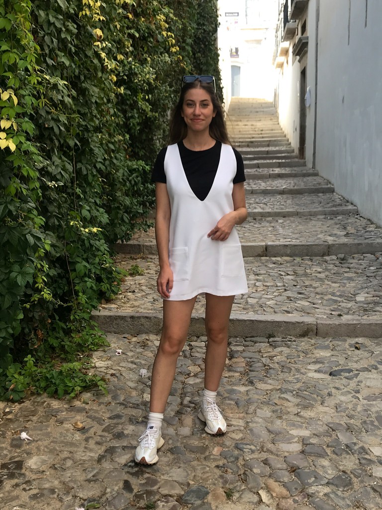 Entre las dos ideamos una espalda escotada, dando opción a que Laura pudiera llevar sujetador, y consiguiendo así una espalda asimétrica e irregular.