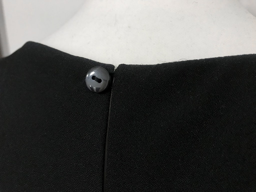 Este detalle nació de la necesidad de abrir un poquito más la prenda para poder quitarlo y ponerlo sin problema -como os cuento, el cierre de la espalda no era funcional-. Hice cuatro presillas de hilo con sus cuatro botoncitos, también forrados y de esta manera, y un poco de maña, Laura podría desabrocharlos y abrocharlos con su mano derecha.