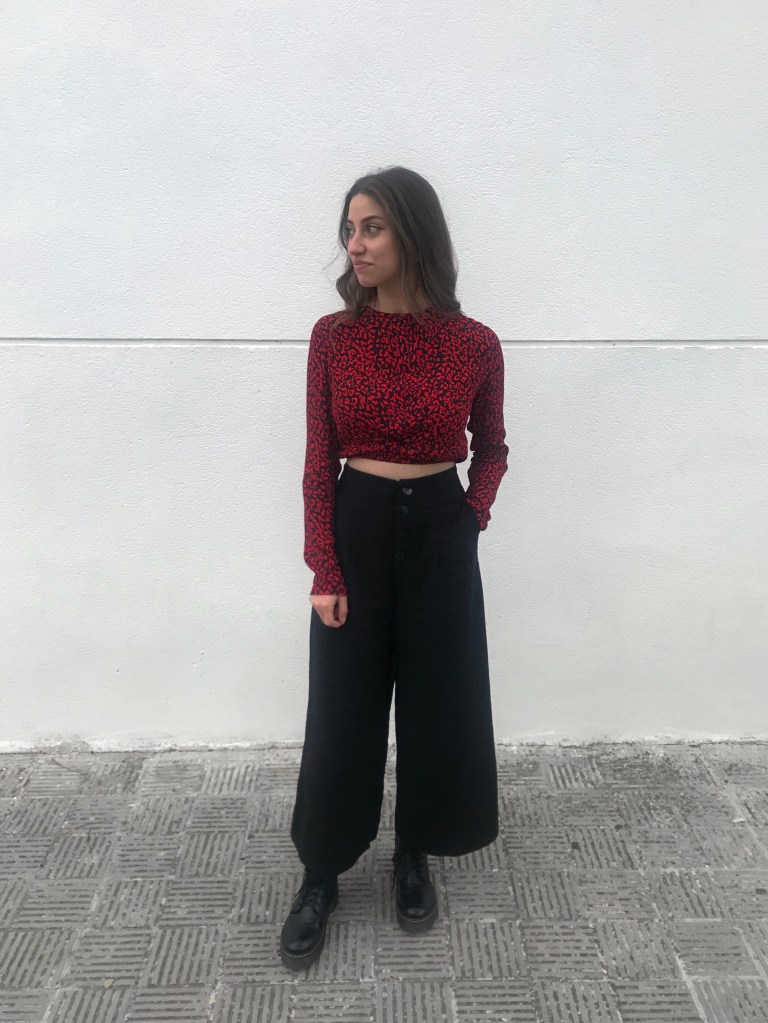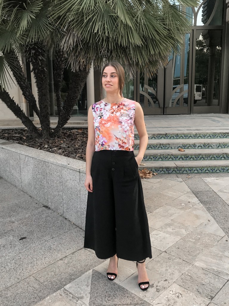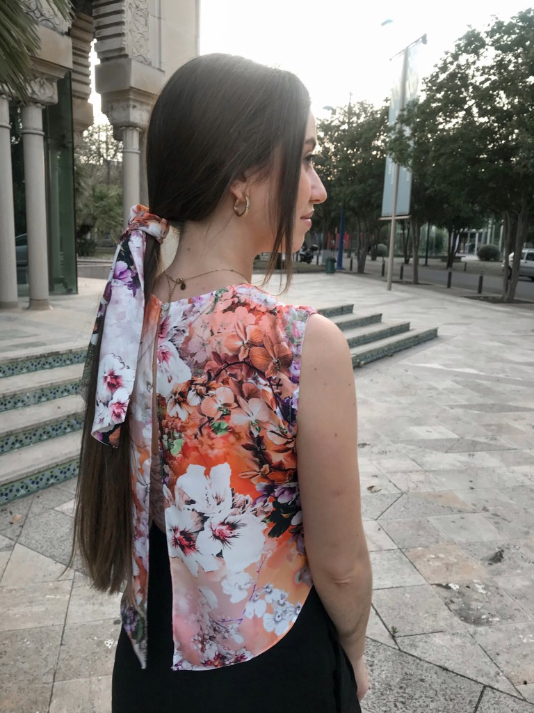 Esta blusa nace de un regalo para Alicia en su cumpleaños, y está inspirada en el vestido babydoll que publiqué el pasado febrero. Habíamos reservado este tejido que habíamos escogido para hacerle una diadema con anterioridad para en un futuro destinarlo a una prenda para ella. Y la elegida fue esta.