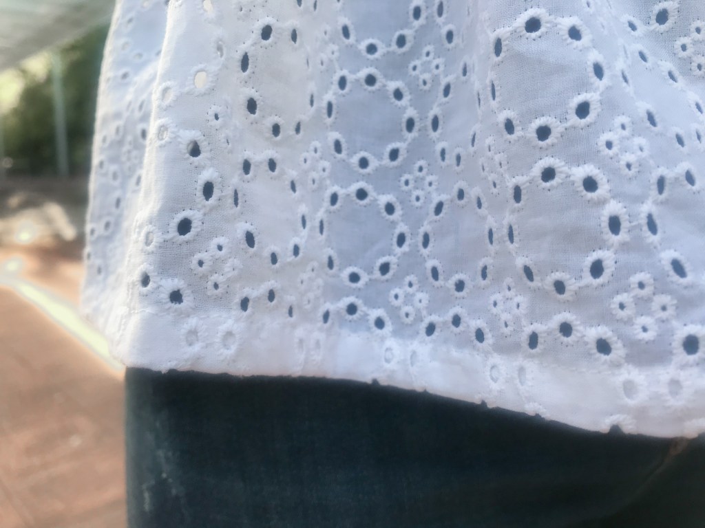 Todo el escote va rematado con un bies de la misma tela y una puntada invisible todo alrededor.