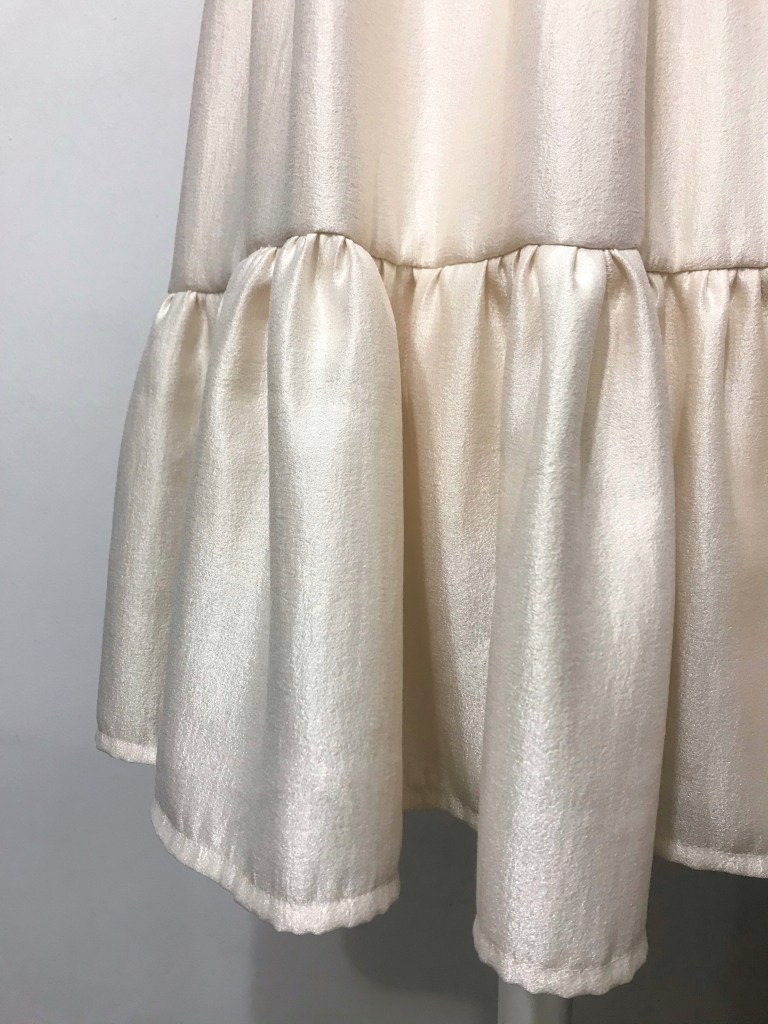 Para que los volantes del vestido abrieran incluí tanza en el repulgo del cordoncillo.