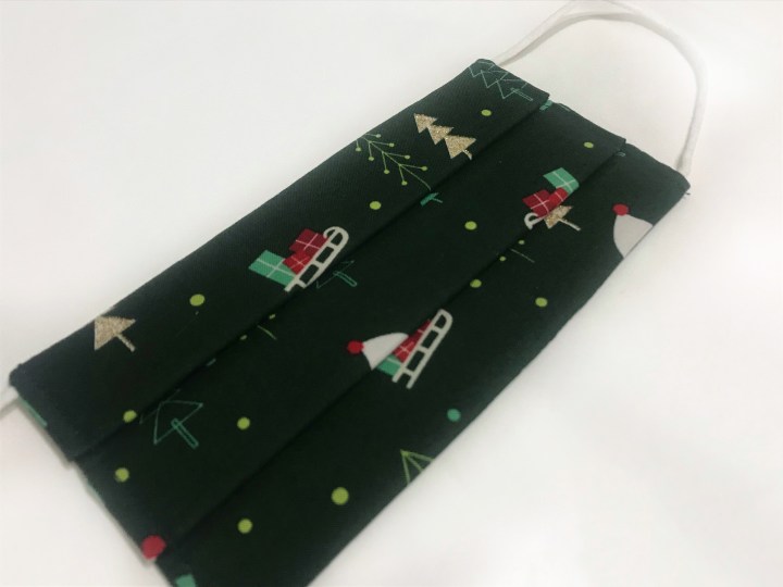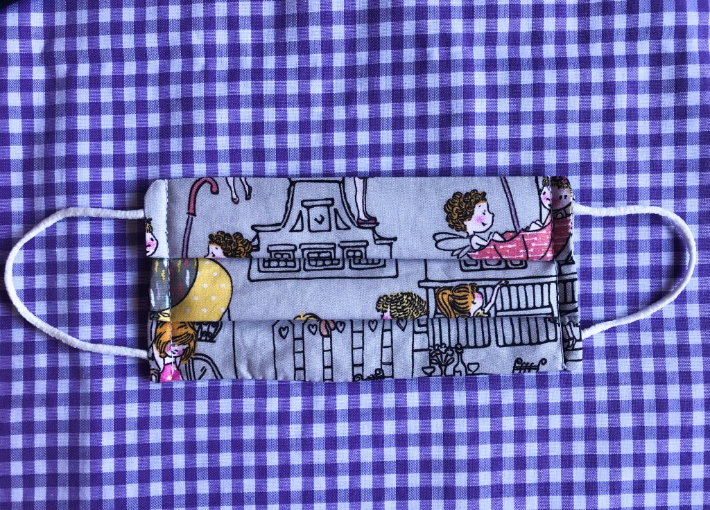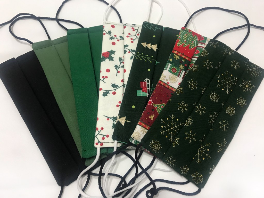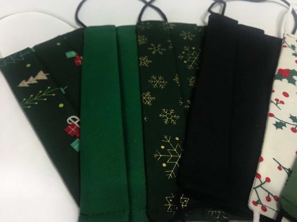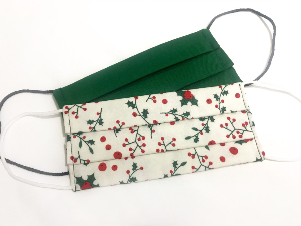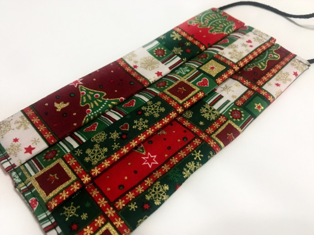 Para las manoplas corté seis capas de guata y cuatro de tela por cada una, y lo cosí haciendo el pespunte clásico en rombos característico de las prendas guateadas. Una vez hecha cada mitad, las cosí y rematé el borde con el bies, haciéndole un ganchito para colgar con él.