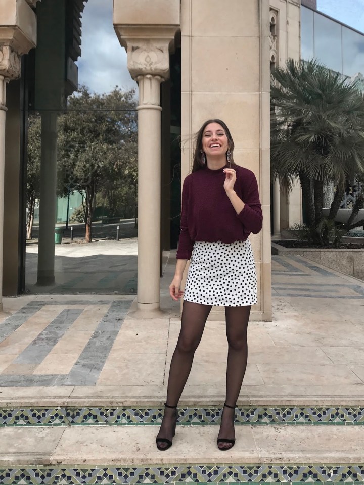 Para las fotos decidí combinarla con playeros y camiseta básica, ambos en blanco. Sin embargo, admite tanto unos botines de plataforma y un jersey de punto para ir abrigada al trabajo como un taconazo y una blusa más sobria para asistir a cualquier cita. Eso sí, al ser tartán rojo, cuidado con los colores y los estampados.