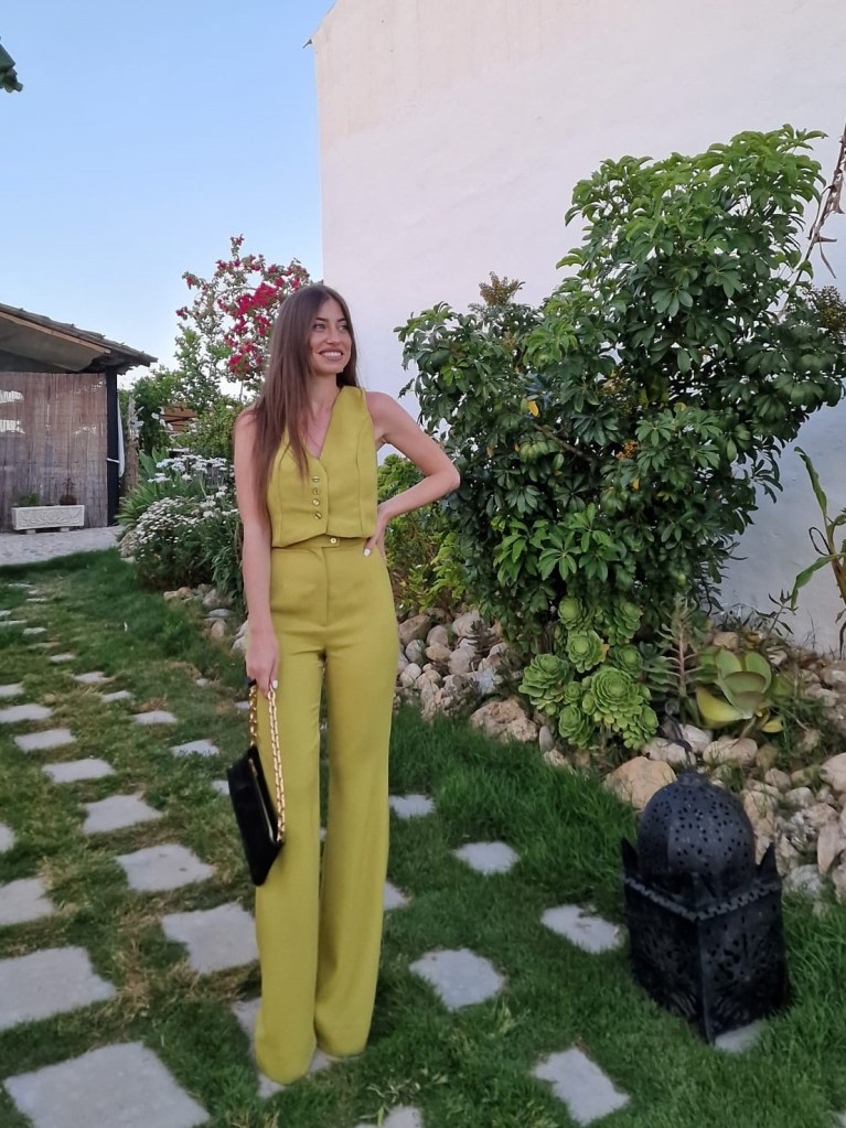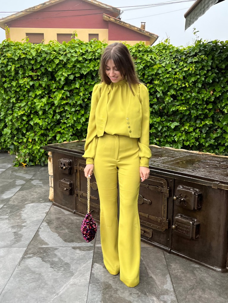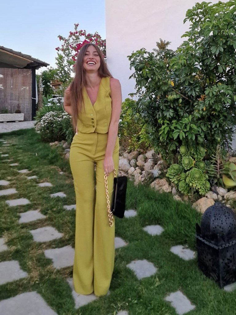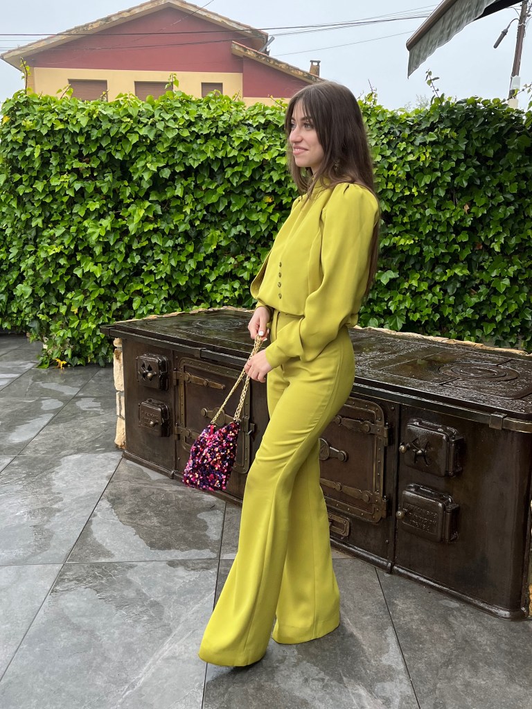 ¿Os gusta la elección de Lorena para este día tan bonito e importante? Yo, particularmente, la veo superfavorecida. Me encanta tanto el trabajo de peluquería y maquillaje como su elección de complementos, que no se ve, pero llevaba una carterita a juego con el stiletto negro que rompía con el monocromo del vestido.