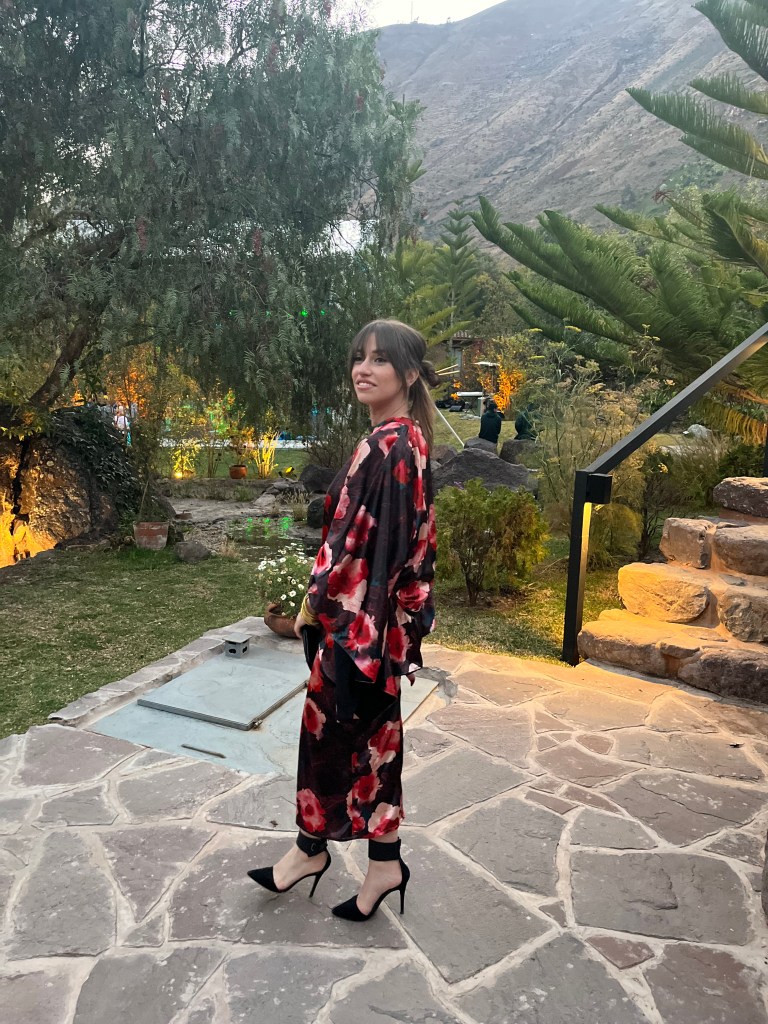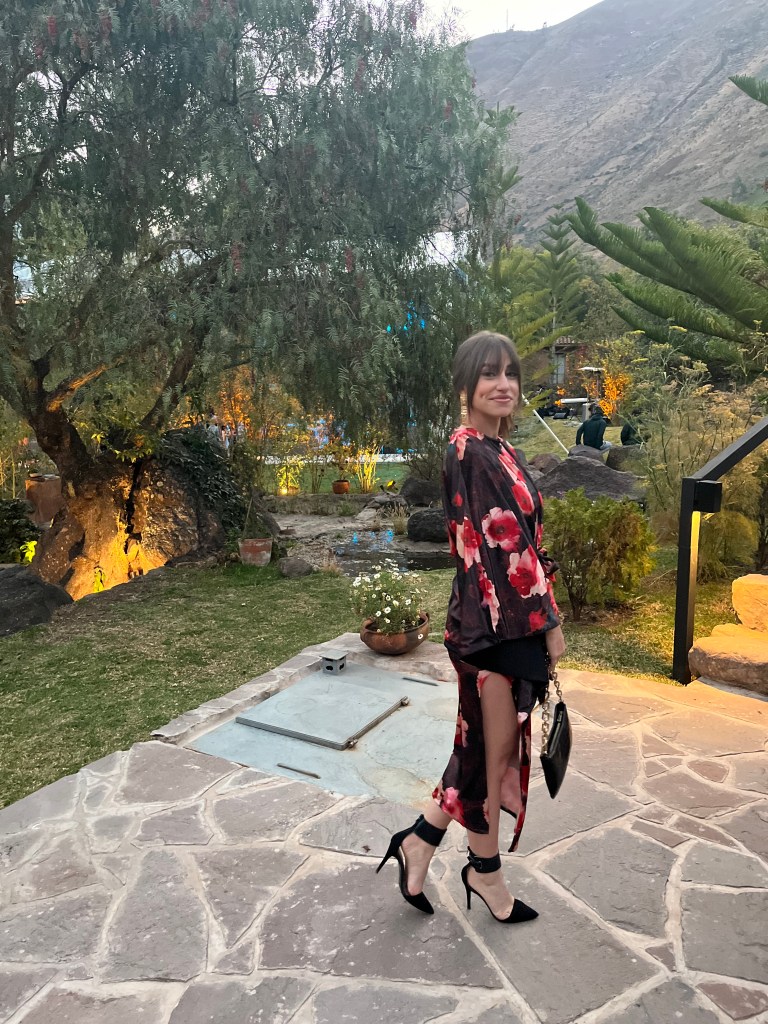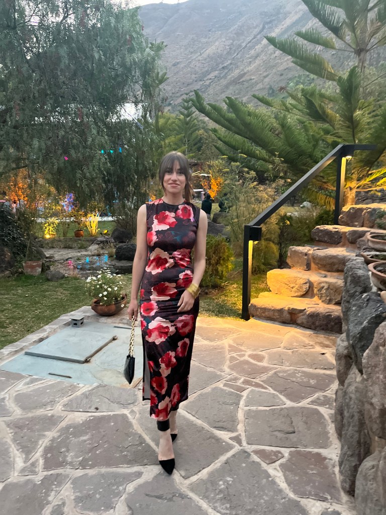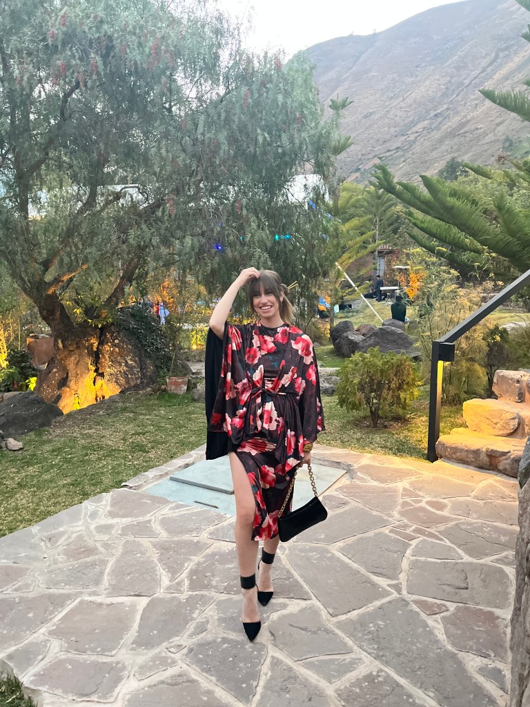 Lorena, la madre del novio, tenía varias ideas que le gustaban. Quería ir de «madrina, madrina». Le gustaba que fuera largo y vaporoso para que le diera movimiento, y para el cuerpo un tejido distinto. Después de contarme y enseñarme vestidos que le encajaban, pasamos al color. Le gustaban varios, pero solamente se visualizaba con uno: rojo. Y yo pienso que fue acierto total.