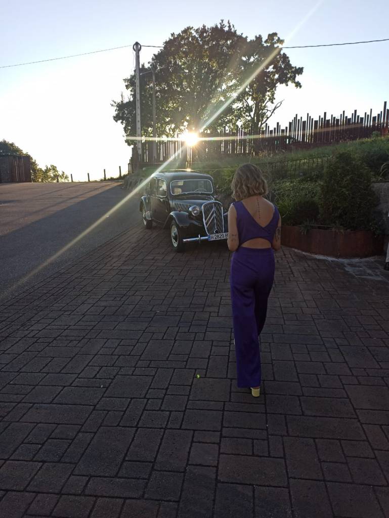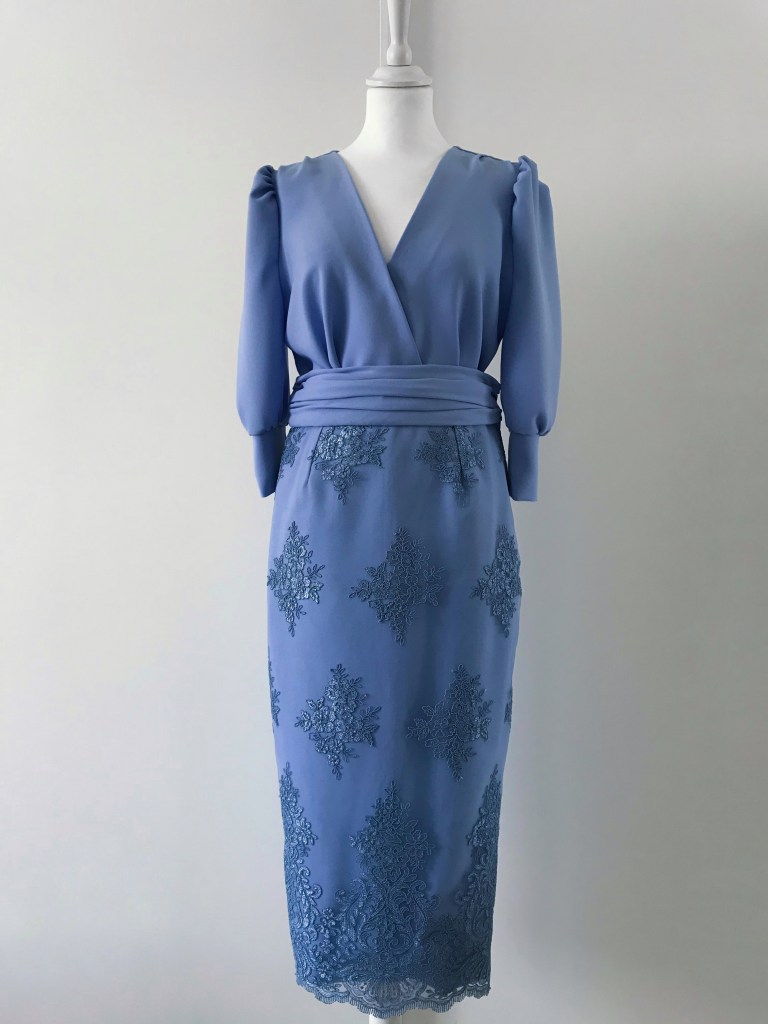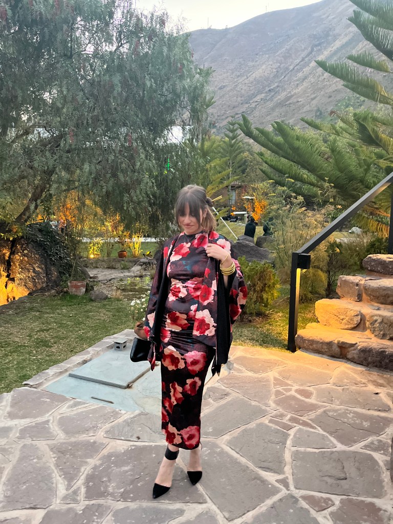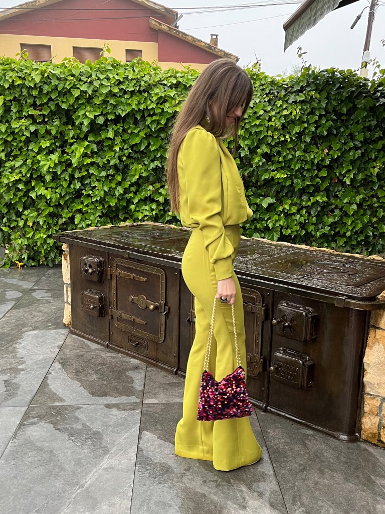 Lorena, la madre del novio, tenía varias ideas que le gustaban. Quería ir de «madrina, madrina». Le gustaba que fuera largo y vaporoso para que le diera movimiento, y para el cuerpo un tejido distinto. Después de contarme y enseñarme vestidos que le encajaban, pasamos al color. Le gustaban varios, pero solamente se visualizaba con uno: rojo. Y yo pienso que fue acierto total.