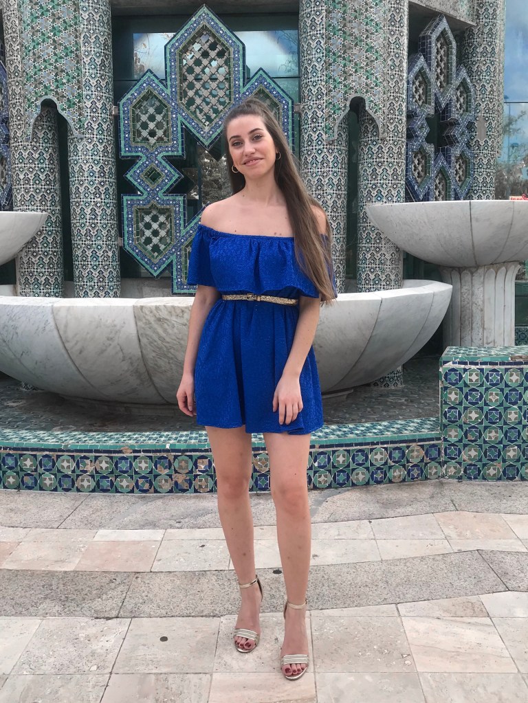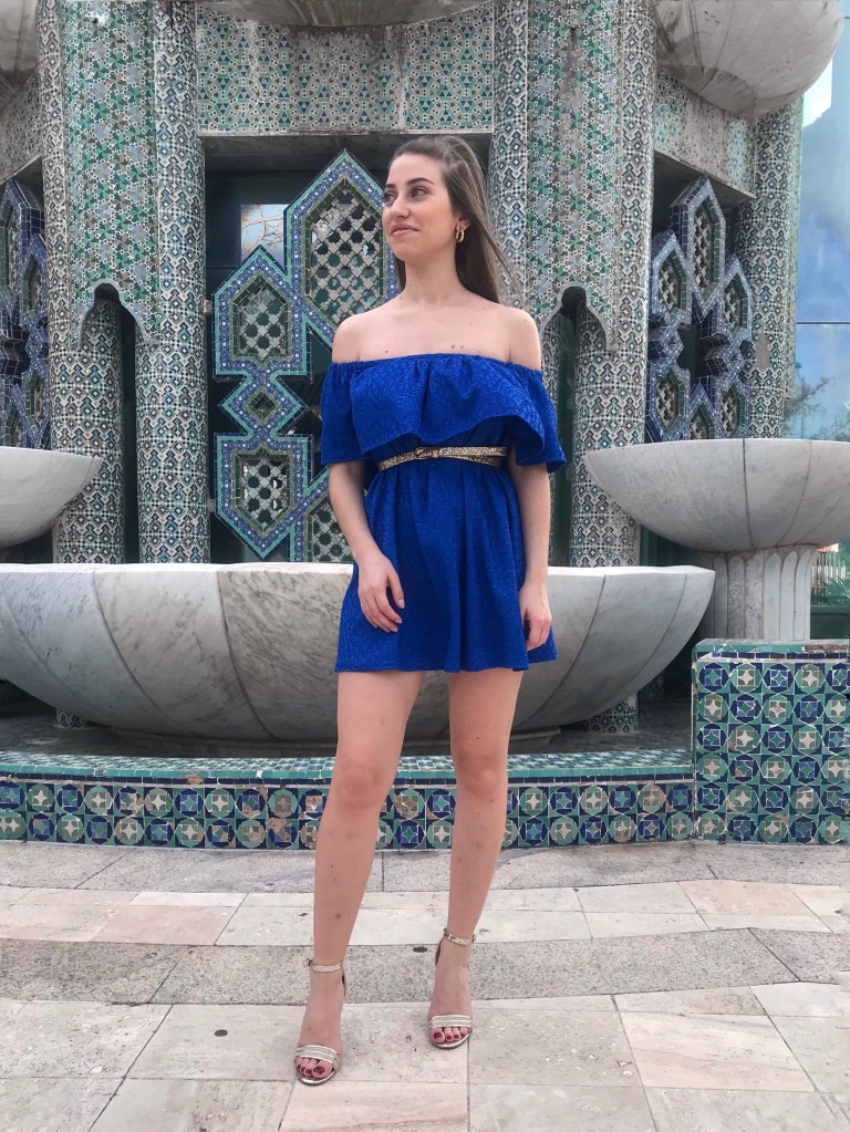 Hicimos un repaso de tendencias, de las que iban más con ella y le favorecían. Por su parte, ella fue a un taller de colorimetría para conocer su paleta. Dentro de las opciones que le propuse nos decantamos por una de vestido corte cadera baja pero el bajo en diagonal y que fuera monocromo, pues estos dos aspectos favorecen a las que no somos muy altas. Diseñamos que de la cadera salieran un mar de flecos largos que hicieran que el efecto visual fuera corte midi. Añadimos como tirantes unos que salieran en frunce desde el escote que se hicieran más ancho justo encima del hombro y que ella pudiera posicionar más o menos caído hacia el brazo según quisiera.